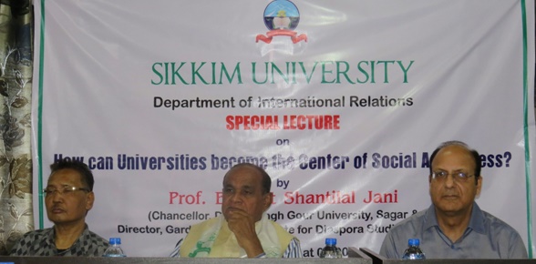 Prof.BalvantShantilalJani, Chancellor Dr.HarisinghGour University, Sagar (M P), Prof.Jyoti Prakash Tamang, Vice- Chancellor and Sh. T.K. Kaul, Registrar at the special lecture on “How can a University be the Centre of Social Awareness”